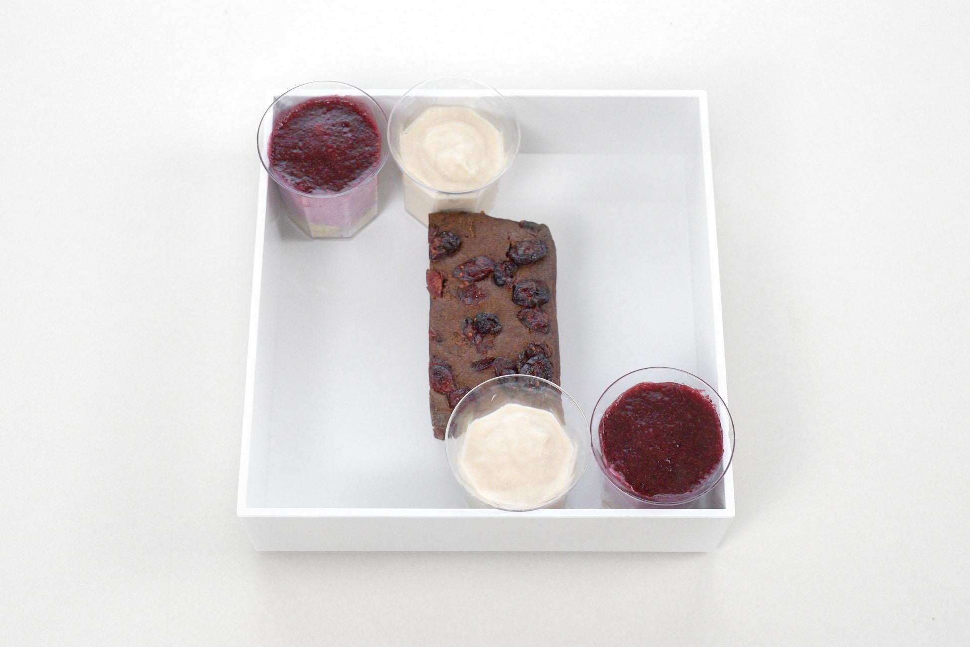 原材料:てんさい糖、米油加工食品、米粉、酵母飲料、クランベリー加工品、ホワイトソルガム、カカオバター、ココアパウダー、ひよこ豆、メープルシロップ、じゃがいもタンパク食品、食塩/炭酸Ca、セルロース、酸化防止剤(V.C、チャ抽出物)、乳化剤、香料、水酸化Ca、安定剤(キサンタンガム)、膨張剤、重曹