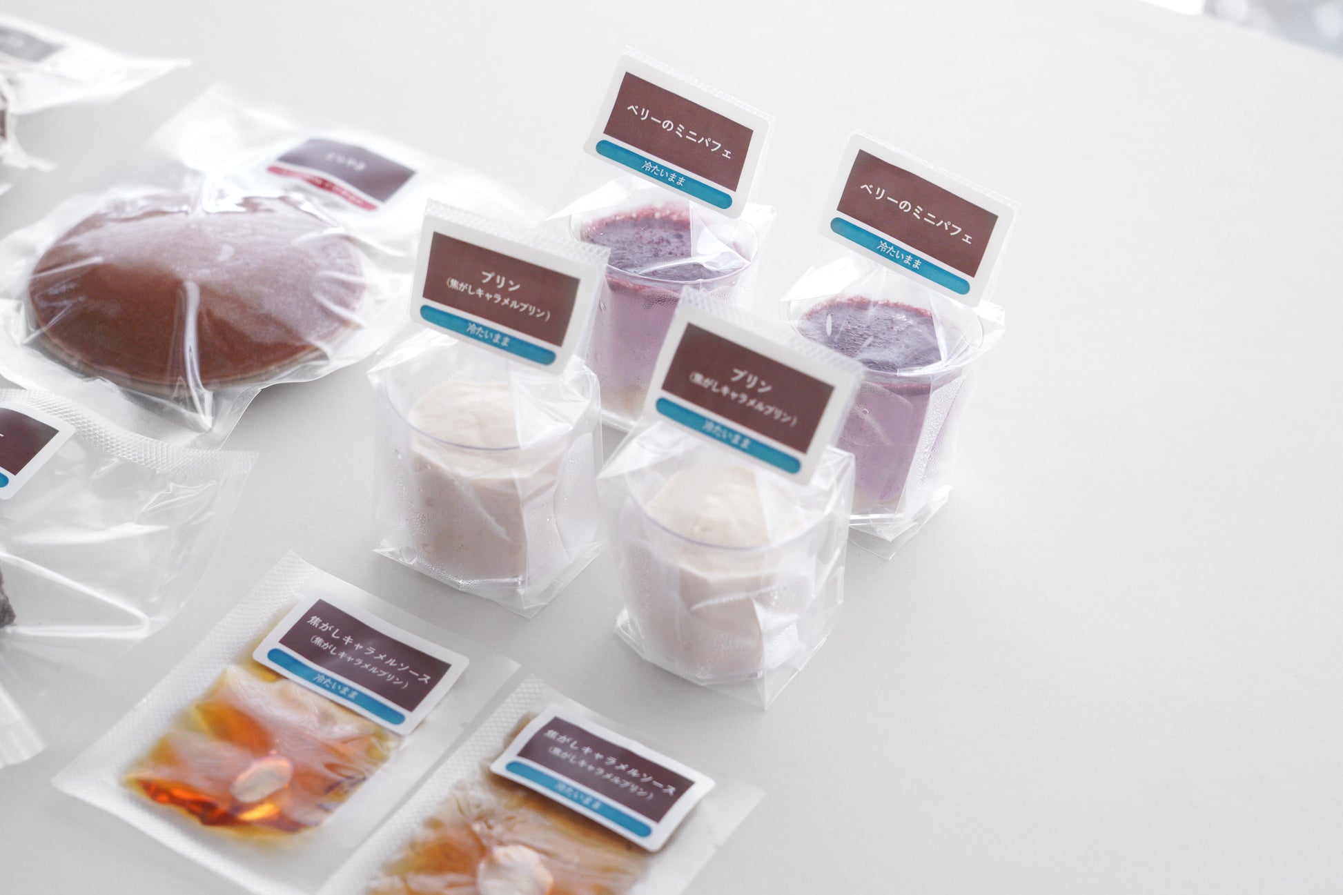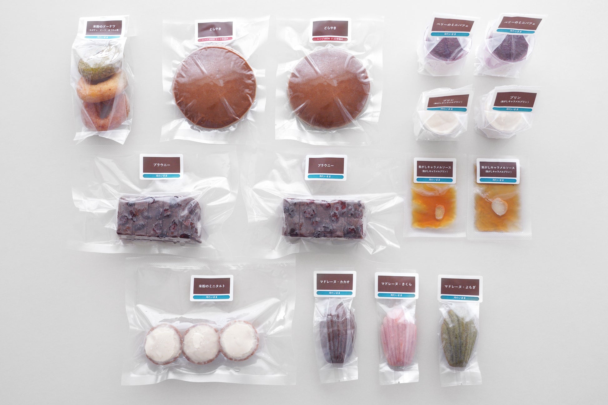 原材料:大豆加工品(食用植物油脂、大豆粉末)、いちご、てんさい糖、ブルーベリー、ひよこ豆、米粉、食用こめ油、白ワイン、じゃがいもタンパク食品、コーンスターチ、メープルシロップ、レモン、こんにゃく加工品、洋酒、食塩/乳化剤、安定剤(増粘多糖類、アカシア、キサンタンガム)、ゲル化剤(増粘多糖類、アルギン酸ナトリウム、カラギナン、ローカストビーンガム)、酸化防止剤(亜硫酸塩、無水亜硫酸)、膨張剤、硫酸カルシウム、塩化マグネシウム、重曹、香料、(一部に大豆を含む)