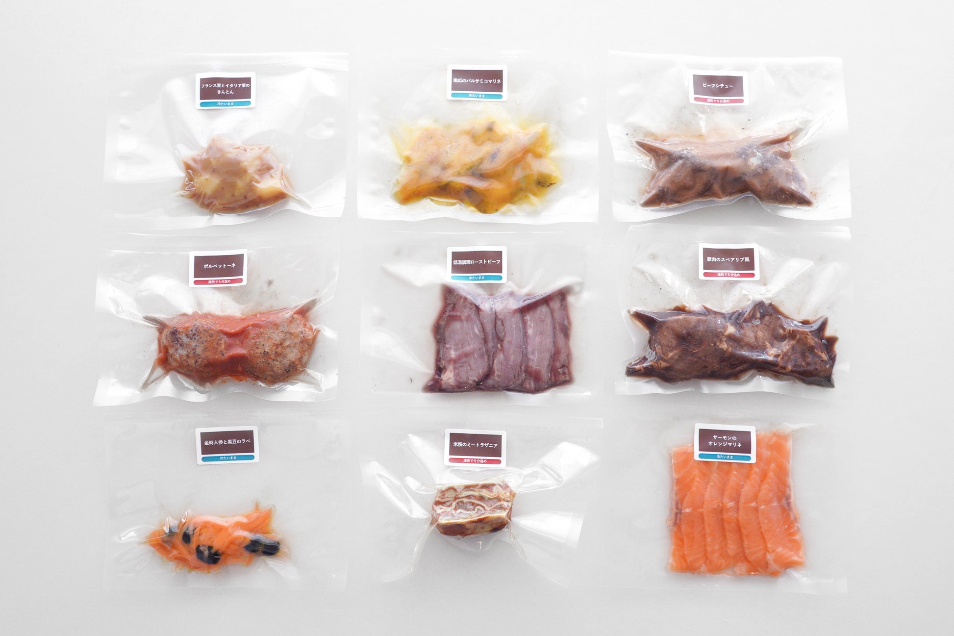 原材料:ホタテ、真鯛、植物性ホイップクリーム(植物油脂、オーツ麦糖化糖、植物性たんぱく、果実抽出物、食塩)、グリーンペッパー(青胡椒、塩)、てんさい糖、オリーブオイル、食塩、金柑、梅干し(梅、漬け原材料(食塩))、こしょう、タイム/乳化剤、増粘多糖類、調味料(無機塩)、pH調整剤、香料、(一部に大豆を含む)