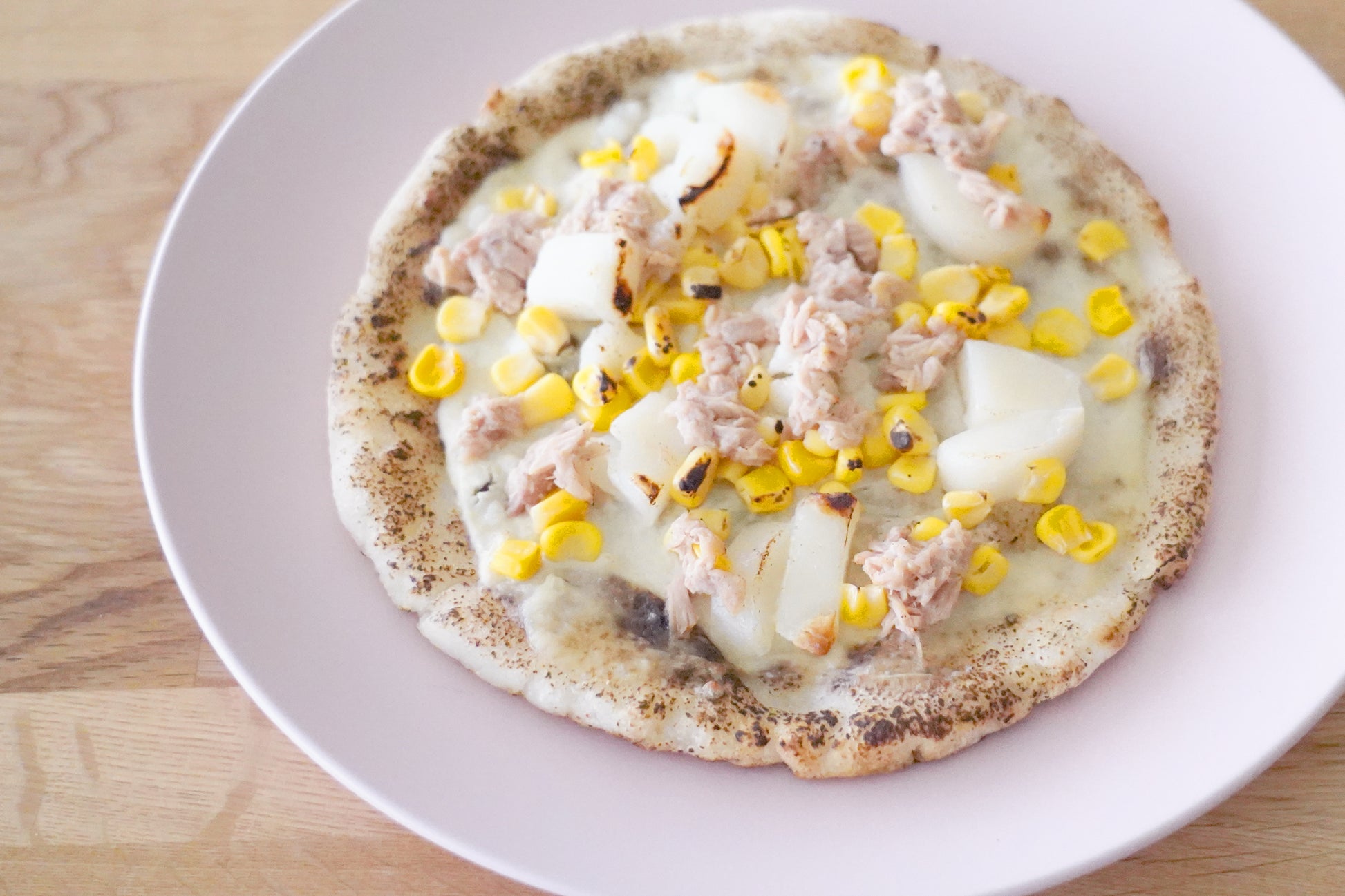 濃厚な豆乳クリームにツナの旨味とコーンの甘みが美味しいピッツァです。