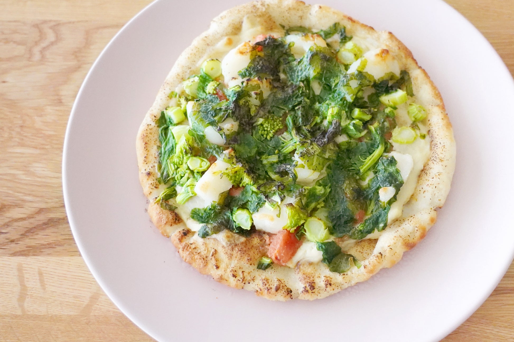 ピッツァ・プリマヴェーラ:クリームソース+菜の花+明太子+豆乳チーズ