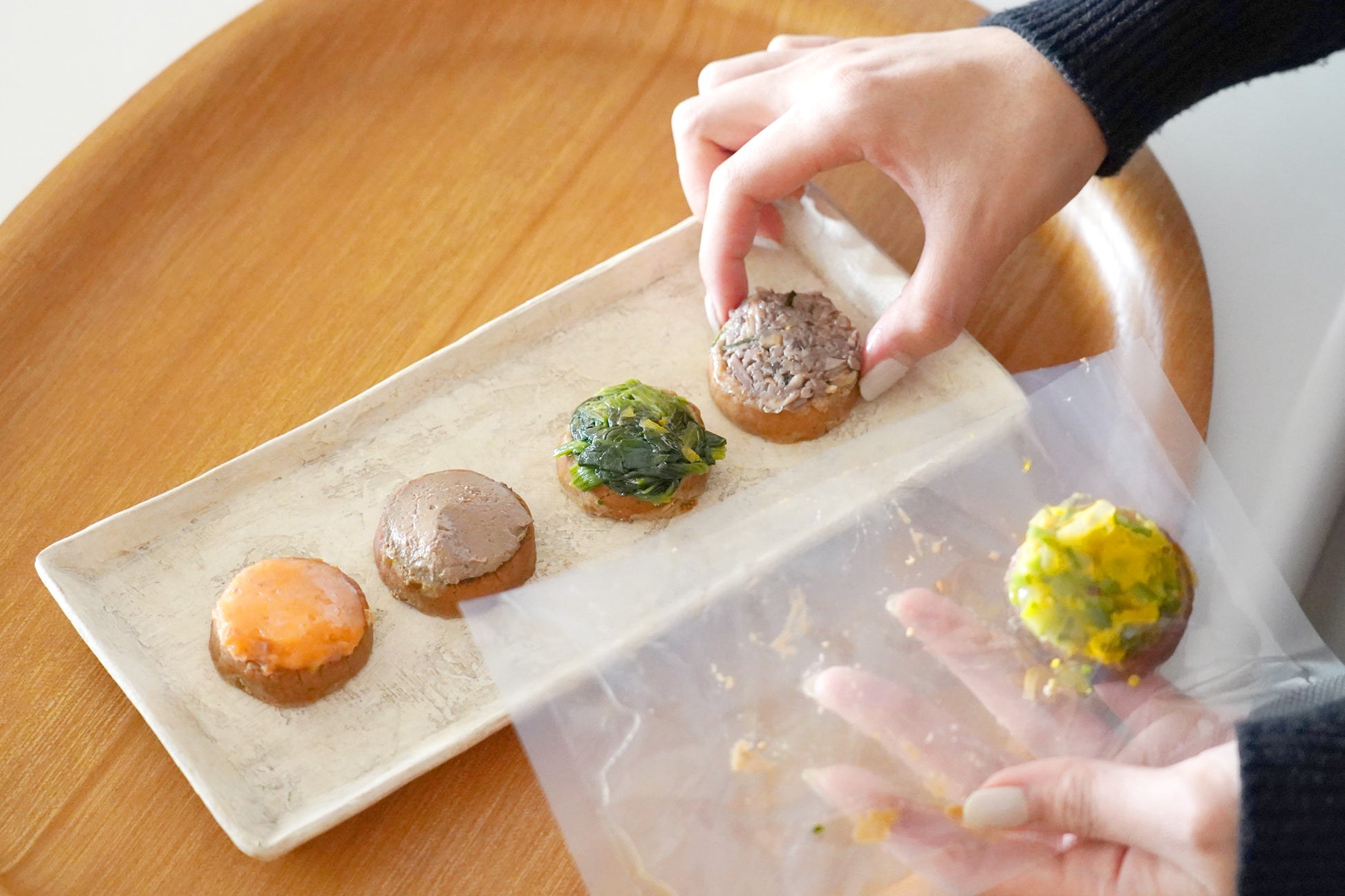 マトイルでひとつひとつ手作りされた米粉のタルト土台に、シェフおすすめの素材を合わせています。どんなお酒とも相性の良い5種の味が楽しめるミニタルトは、自分へのご褒美としてはもちろん、おもてなしの一品としてもおすすめです。